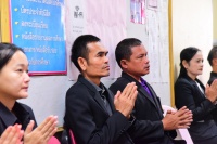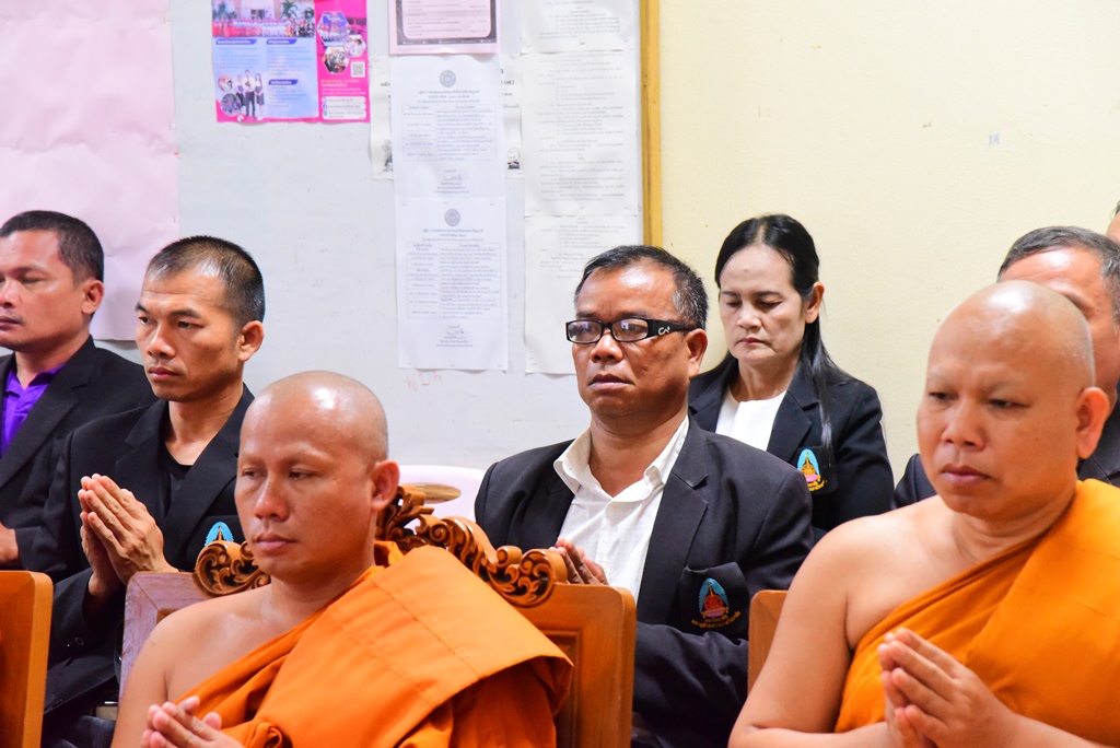 บุคลากร ผู้บริหาร คณาจารย์เจ้าหน้าที่ ร่วมพิธี ณ ชั้น 1 อาคารสัจจานุรักษ์