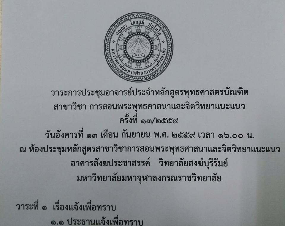 ประชุมหลักสูตรพุทธศาสตรบัณฑิต สาขาวิชาการสอนพระพุทธศาสนาและจิตวิทยาแนะแนว