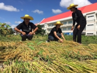 วิทยาลัยสงฆ์บุรีรัมย์จัดลงแขกเกี่ยวข้าวยึดหลักเศรษฐกิจพอเพียง วิทยาลัยสงฆ์บุรีรัมย์ มหาวิทยาลัยจุฬาลงกรณราชวิทยาลัย จัดลงแขกเกี่ยวข้าว ยึดตามวิถีชีวิตตามแนวปรัชญาเศรษฐกิจพอเพียง ถวายเป็นพระราชกุศลแด่ พระบาทสมเด็จพระปรมินทรมหาภูมิพลอดุลยเดช ทั้งเพื่อ เพื่อสืบสานวิถีชีวิตแบบดั้งเดิมของชาวนาไทย และบูชาพระแม่โพสพตามความเชื่อมาแต่โบราณ เมื่อวันที่ 31 ต.ค.59 พระศรีปริยัติธาดา ผู้อำนวยการวิทยาลัยสงฆ์บุรีรัมย์ มหาวิทยาลัยจุฬาลงกรณราชวิทยาลัย เป็นประธานเปิดโครงการส่งเสริมและพัฒนาวิถีชีวิต ตามแนวปรัชญาเศรษฐกิจพอเพียง โดยการลงแขกเกี่ยวข้าวในแปลงนาสาธิตจำนวน 4 ไร่ ของวิทยาลัยสงฆ์บุรีรัมย์ มหาวิทยาลัยจุฬาลงกรณราชวิทยาลัย (เขากระโดง) ต.เสม็ด อ.เมือง จ.บุรีรัมย์ เพื่อเป็นการถวายเป็นพระราชกุศลแด่ พระบาทสมเด็จพระปรมินทรมหาภูมิพลอดุลยเดช เพื่อเป็นการรักษาวัฒนธรรมประเพณีอันดีงาน ในการสร้างความสัมพันธ์อันดีระหว่างวิทยาลัยสงฆ์บุรีรัมย์ฯ กับชุมชน เพื่อสร้างความตระหนักให้ ทั้งบุคลากรของวิทยาลัยฯ และประชาชนทั่วไปได้มีจิตสำนึกในการรับผิดชอบต่อสิ่งแวดล้อม เกิดความรักและหวงแหนทรัพยากรที่มีอยู่ และรู้คุณค่าของภูมิปัญญาท้องถิ่นรวมถึงสิ่งที่อยู่รอบตัว โดยมีคณะผู้บริหาร คณาจารย์ เจ้าหน้าที่ นิสิต นักศึกษาของวิทยาลัยสงฆ์บุรีรัมย์ฯ และชาวบ้านจากชุมชนต่างๆรวมกว่า 200 คน ร่วมในพิธีโดยพร้อมเพรียงกัน ***ทั้งนี้ก่อนการลงแขกเกี่ยวข้าว ได้มีการแจกเสื้อยืดสีดำแก่ผู้ที่มาร่วมกิจกรมลงแขกเกี่ยวข้าวด้วย จากนั้นพระศรีปริยัติธาดา พร้อมด้วยผู้เข้าร่วมกิจกรรมลงแขกเกี่ยวข้าว ได้ร่วมกันกล่าวคำถวายอาลัย ยืนสงบนิ่งเป็นเวลา 9 นาที และขับร้องเพลงสรรเสริญพระบารมี ต่อหน้าพระบรมฉายาลักษณ์ พระบาทสมเด็จพระปรมินทรมหาภูมิพลอดุลยเดช ***พระศรีปริยัติธาดา กล่าวว่าสำหรับพื้นที่นาดังกล่าวเป็นแปลงนาสาธิต ของทางวิทยาลัยสงฆ์บุรีรัมย์ มหาวิทยาลัยจุฬาลงกรณราชวิทยาลัย บนพื้นที่จำนวน 4 ไร่ ที่ทางวิทยาลัยฯ ได้จัดซื้อจากชาวบ้านในพื้นที่ เพื่อเตรียมจัดสร้างเป็นอาคารเรียนของทางวิทยาลัยฯ และขณะนี้ที่ยังไม่ได้ดำเนินการก่อสร้าง จึงได้จัดทำเป็นแปลงนาสาธิตโดยปลูกข้าวหอมมะลิ ซึ่งเป็นข้าวพันธุ์พื้นเมืองบุรีรัมย์ เพื่อไว้ให้บุคลากรเจ้าหน้าที่ และนิสิต นักศึกษาของวิทยาลัยฯ ได้ศึกษาเรียนรู้เกี่ยวกับวิธีการทำนา ตามวิถีเศรษฐกิจพอเพียง ตามแนวทางพระราชดำริ พระบาทสมเด็จพระปรมินทรมหาภูมิพลอดุลยเดช ซึ่งได้มีการจัดทำแบบดั้งเ