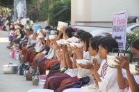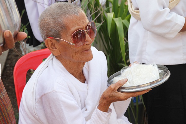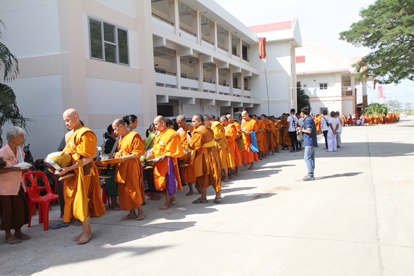 น. คณะสงฆ์นำญาติโยมร่วมทำบุญตักบาตรช่วงเช้า ในโครงการฝึกภาคปฏิบัติวิปัสสนากัมมัฏฐาน