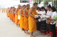 บรรยากาศญาติโยมเดินทางมาร่วมทำบุญและตักบาตรช่วงเช้า วัน จันทร์ ที่ 9 มกราคม 2560 ในโครงการฝึกภาคปฏิบัติวิปัสสนากัมมัฏฐาน ประจำปีการศึกษา ๒๕๕๙ อุทิศถวายพระราชกุศล แด่พระบาทสมเด็จพระปรมินทรมหาภูมิพลอดุลยเดช