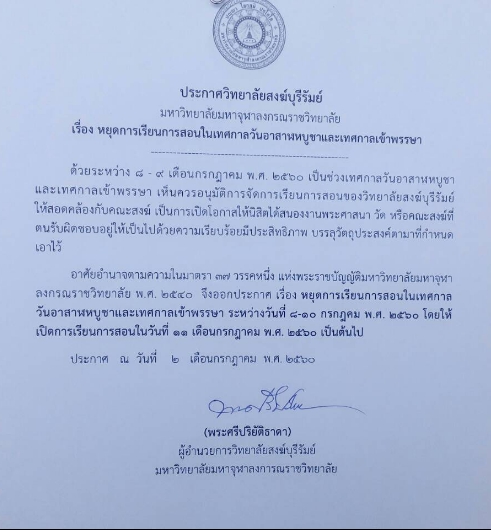 ประกาศ วิทยาลัยสงฆ์บุรีรัมย์ มหาวิทยาลัยมหาจุฬาลงกรณราชวิทยาลัย