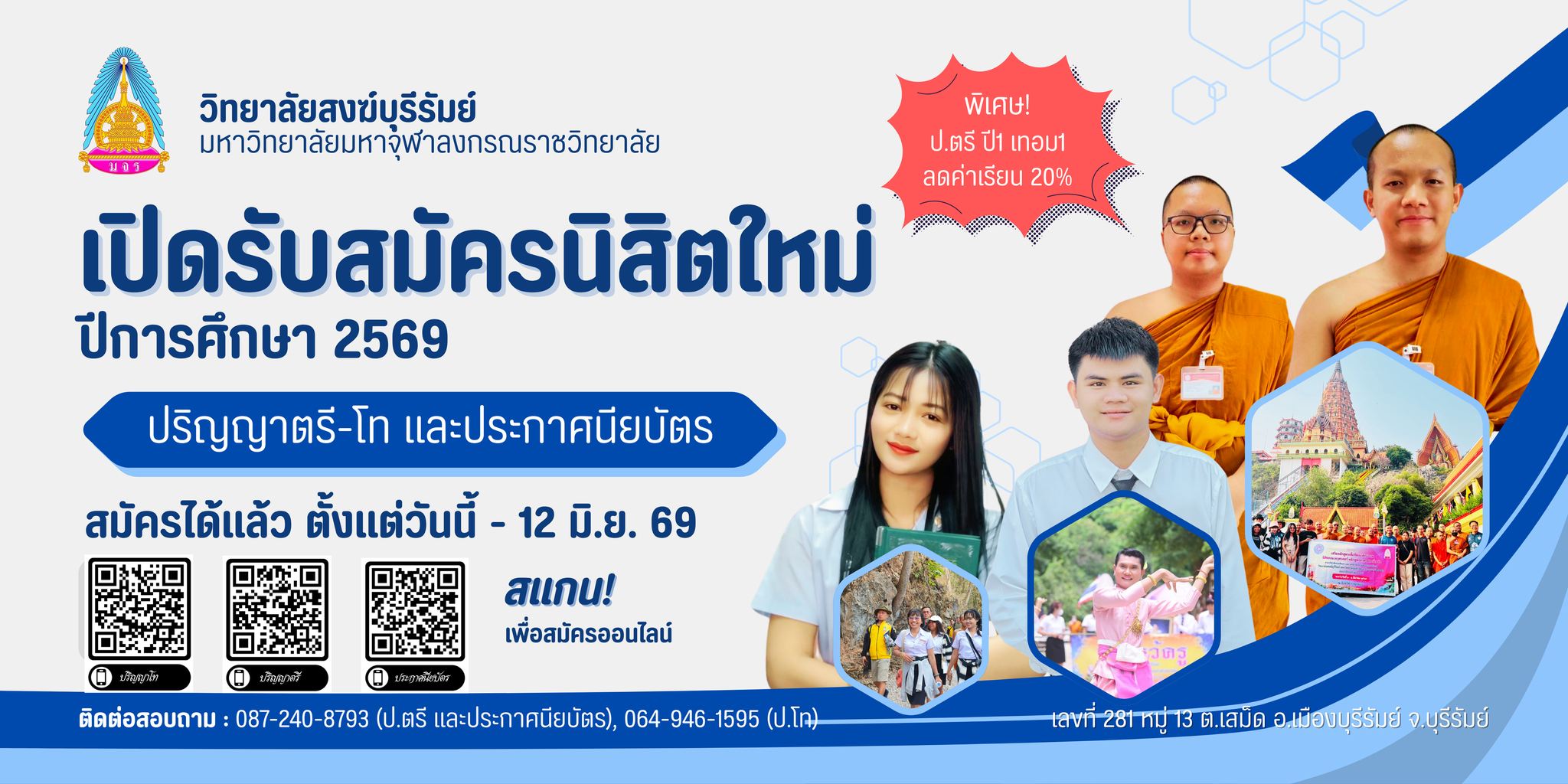 ประกาศรับสมัครนิสิตใหม่ ประจำปีการศึกษา ๒๕๖๙