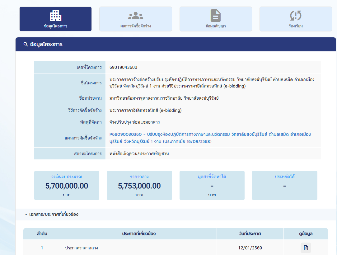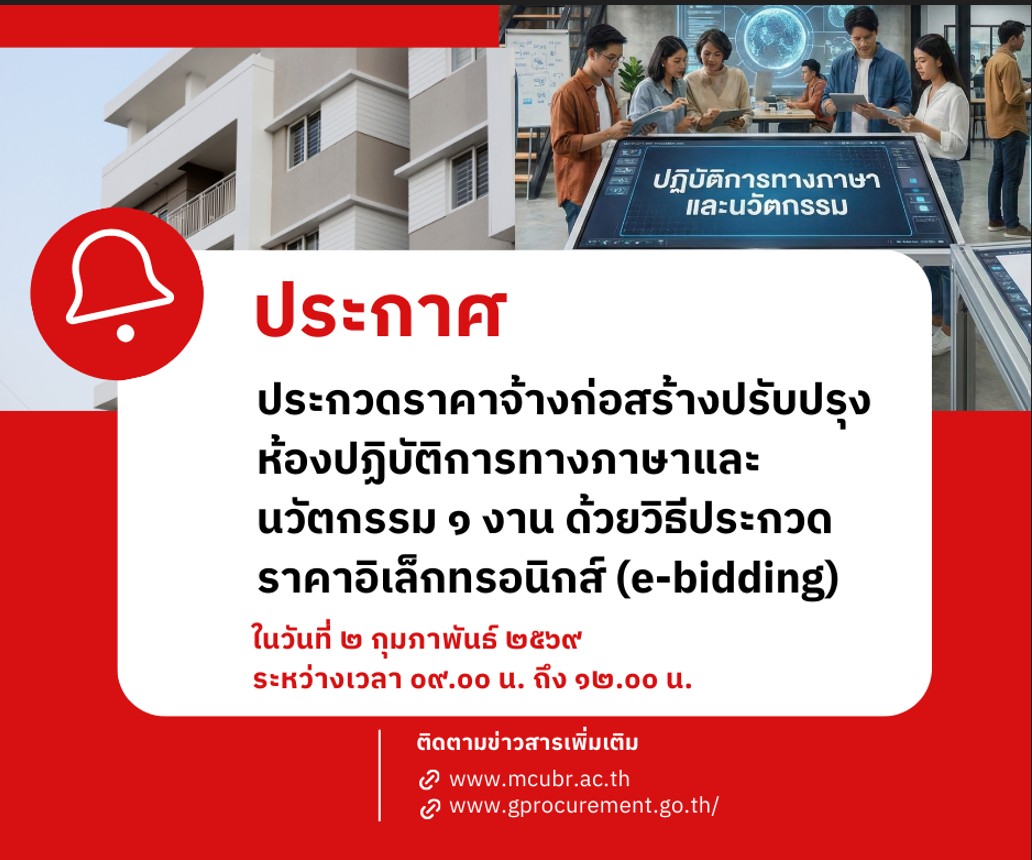 ประกวดราคาจ้างก่อสร้างปรับปรุงห้องปฏิบัติการทางภาษาและนวัตกรรม วิทยาลัยสงฆ์บุรีรัมย์